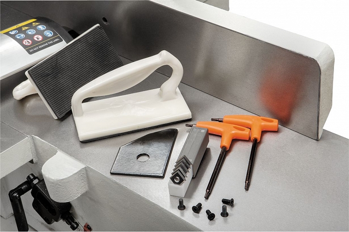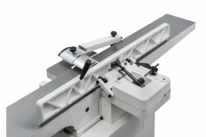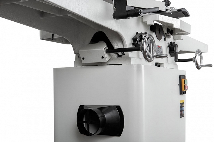 JJ-8HH-M — фуговальный станок с длинными чугунными столами и шириной строгания 200 мм, штатно оборудованный ножевым валом helical.