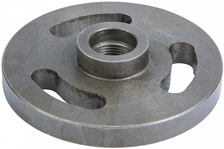 Планшайба – дополнительное оборудование, устанавливаемое непосредственно на шпиндель металлорежущего токарного оборудования. Планшайба подходит для комплектации станка модели BD-3. Приспособление позволяет придать детали, заготовка или инструменту, вращающий момент, для последующей обработки. В ряде случае на оснастку крепится необходимый режущий инструмент. Планшайба изготавливается из прочной стали, имеет форму и конструкцию, удобную для монтажа заготовок и крепления других дополнительных приспособлений. Оснастка оснащается специальными зажимами, предназначенными для крепления и монтажа к передней бабке шпинделя заготовок массивного размера или деталей, имеющих нестандартные формы и конфигурацию.