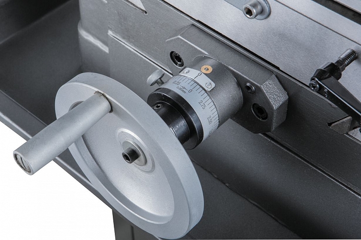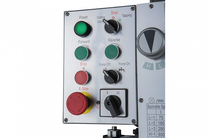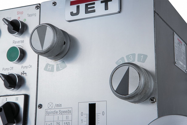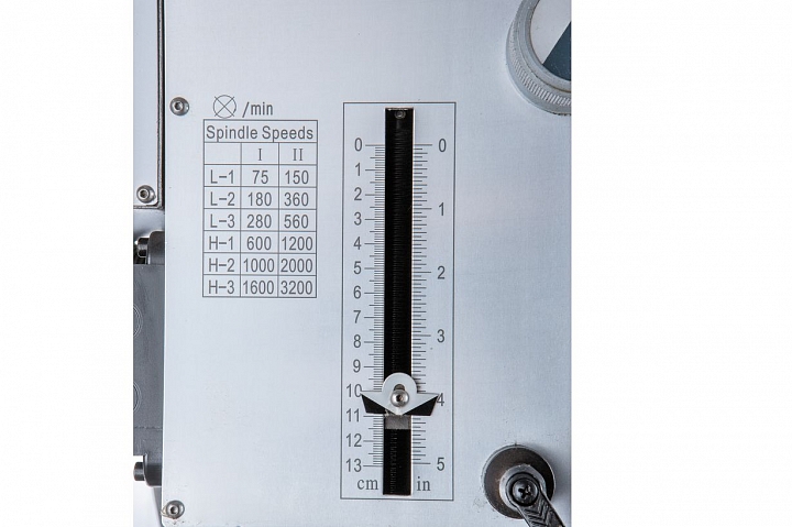 Модель оборудована мощным асинхронным электродвигателем - 1,1/1,5 кВт, обеспечивающий частоту вращения шпинделя в 2-х диапазонах 75-1600 об/мин и 150-3200 об/мин. Станок оборудован коробкой скоростей для выбора необходимой частоты вращения, по 6 скоростей в каждом из двух диапазонов. Функция включения реверса шпинделя позволяет осуществлять нарезание резьбы.