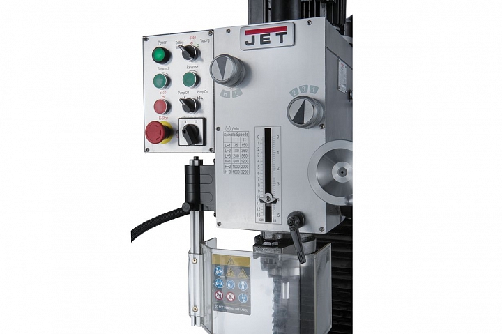 Фрезерно-сверлильный станок JMD-45L представляет собой универсальный тип станочного оборудования, выпускаемого компанией JET. Модель рассчитана на выполнение полного спектра фрезерных и сверлильных работ, нарезания резьбы, выполнения других технологических операций. Оборудование разработано для индивидуального использования, пригодно для производственного цикла. Мощный двигатель и сама конструкция станка рассчитаны на длительные режимы обработки. Станок имеет мощную литую станину из серого чугуна. Массивная стойка дополняет прочность и устойчивость всей конструкции.