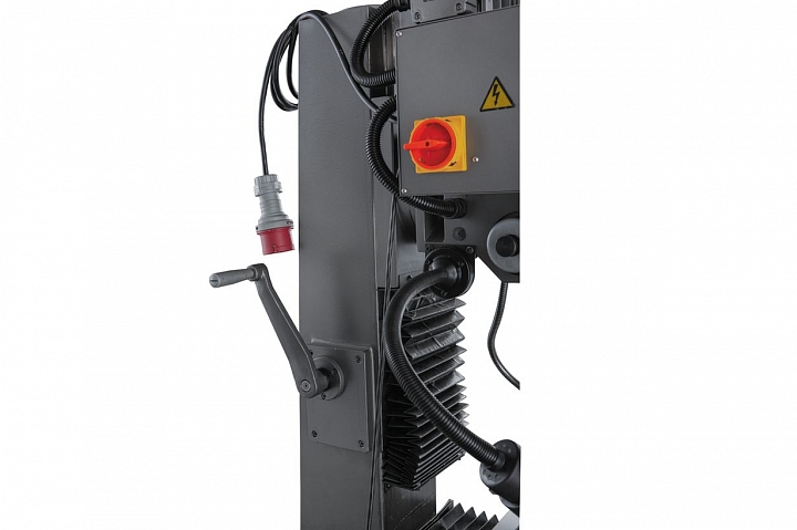 Для расширения задач по обработки заготовок, фрезерная головка станка имеет возможность поворота влево/право на 900, облегчая технологические манипуляции в процессе обработки. Станок оснащен функцией контроля над глубиной сверления, повышая качество обработки и производительность.