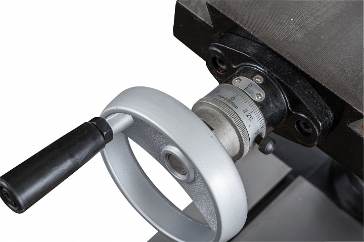 Моторная группа станка имеет мощный асинхронный двигатель - 1,5 кВт, имеющий функцию реверса. Благодаря реверсу шпиндель может вращаться вправо и влево. Наличие ременной передачи с концевым выключателем, позволяет выполнять обработку в 12-ти скоростных режимах. Частота диапазона вращения шпинделя составляет 125-2500 об/мин. Крестовый стол с 3-мя Т-образными пазами шириной 16 мм, позволяют выполнять установку дополнительной оснастки. Рабочий стол оснащен прецизионным механизмом.