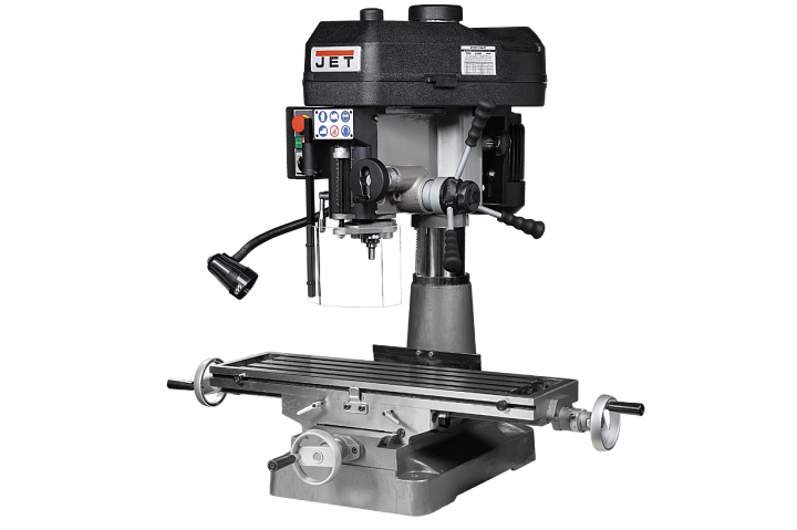 Сверлильно-фрезерный станок JMD-18 по функциональным возможностям представляет собой аналог модели JMD-15, имея более мощный электродвигатель и большие габариты. Эта модель предназначена для выполнения большого объема работ, связанных с фрезерованием и сверлением. Мощная литая станина, массивная стойка изготовлены из литого чугуна, создающие необходимую устойчивость всей конструкции. Модель JMD-18 оснащена механизмом поворота головы на 360 0, создавая широкие возможности для технологической обработки заготовок. Фрезерная головка в этой модели имеет функцию изменения положения в горизонтальной плоскости. Качество обработки заготовок обеспечивается наличием контроля над глубиной сверления.