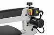 Станок оборудован параллелограммным механизмом привода качающейся части, имеющим ряд особенностей. Во-первых, верхняя часть рамы поднимается, что удобно при наладке или установке заготовки. В верхнем положении она фиксируется и не требует удерживания. Нижнее положение можно корректировать вращением рукоятки, подстраивая под длину пилки и толщину детали. Во-вторых, предусмотрен режим работы с продольной подкачкой полотна (так называемый маятниковый ход), который обеспечивает более «агрессивное» и производительное пиление. В зависимости от требований к скорости, точности и чистоте распила настраивают амплитуду продольных движений в диапазоне от нуля и до максимальной величины. Процедура выполняется поворотом моторного модуля вокруг оси.